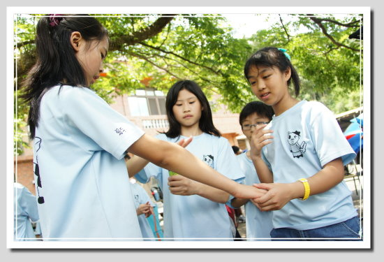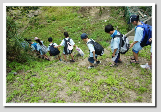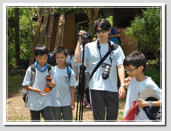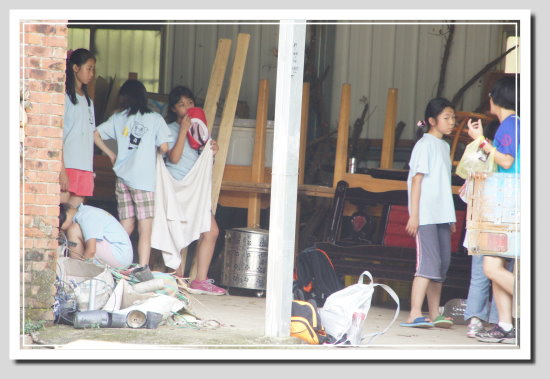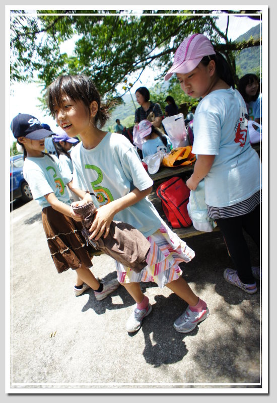 由於下午要到上坪溪戲水,大家開始長褲換短褲,不過,在沒有更衣室的這裡,換裝真的各憑本事。