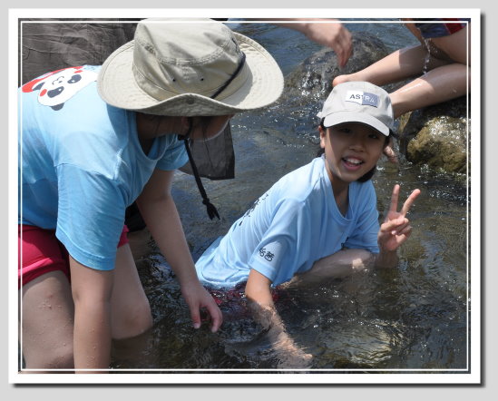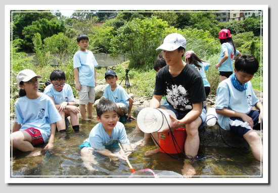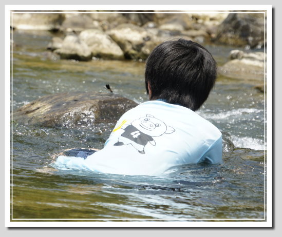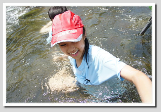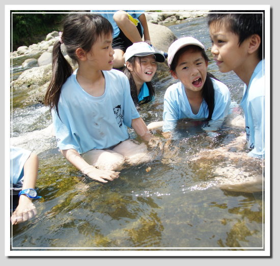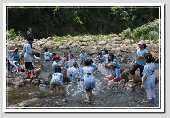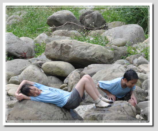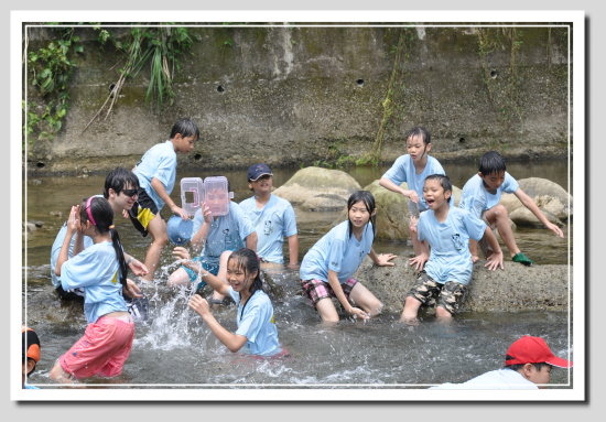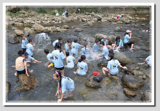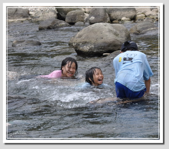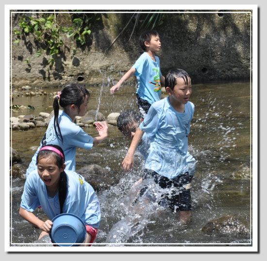 拗不過各方要求,總算收起相機下水。天啊冰涼的溪水沾溼全身,暑意頓時消失得無影無蹤,迎面而來的是小朋友的攻擊。