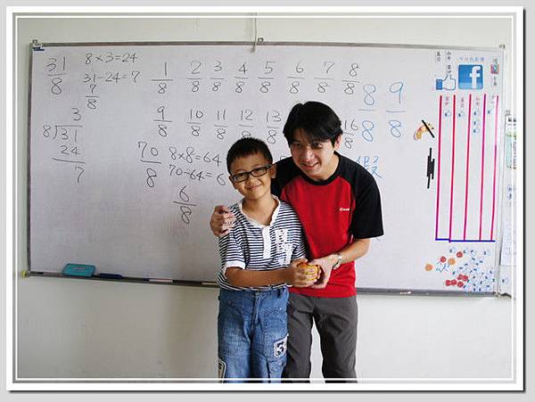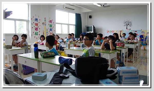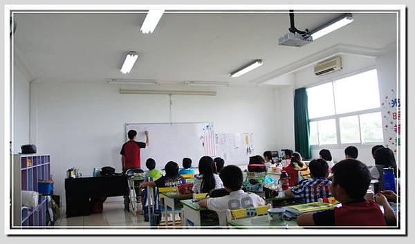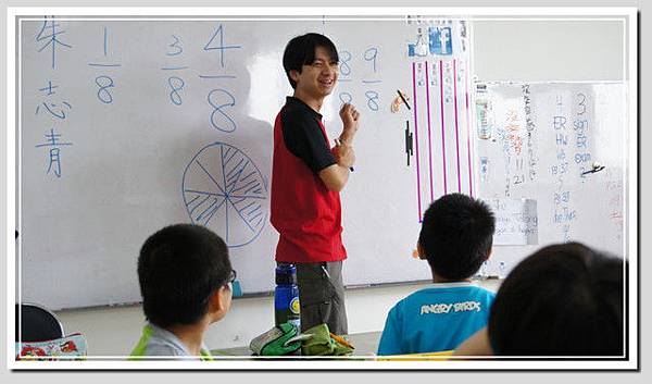 儘管如此,體力上還沒有感受到影響,一進入四年級教室,二十四個小孩天真的看著我走進來,活力似乎又悄悄出現了。老師事前沒有告訴學生我會去上兩節課,學生的表情帶有許多的疑惑。老師說,今天帶給大家一個驚喜,將有一位從台灣來的老師,要來為我們上兩堂數學課。學生聽到「台灣來的老師」時,表情相當興奮,但聽到「上兩堂數學課」時,不約而同發出了長長的一聲「蛤……」。這就是小孩對數學的印象。