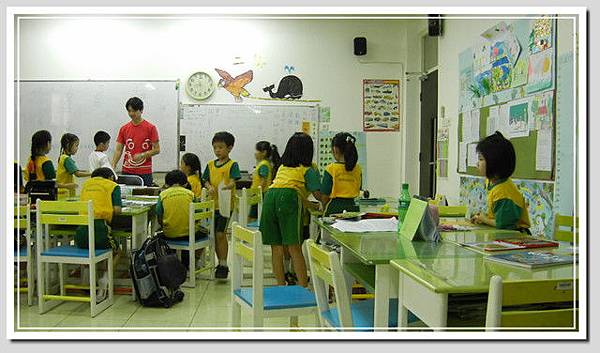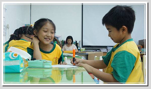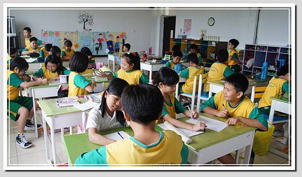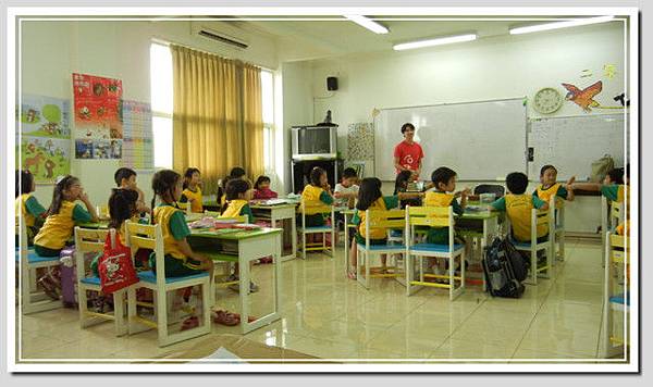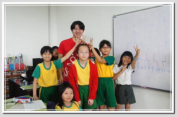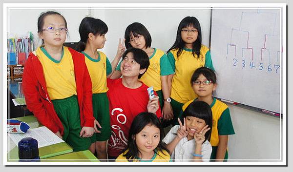 一踏進教室,每個人都在做自己的事情,老師低頭改作業,學生有的看書、有的畫畫,看著我走進教室,就投以好奇的眼神,在小白板上標出了這兩堂課的時間將會上數學課,可見老師已經跟學生說過了。我先是熱情的跟小朋友們打招呼,接著簡單的自我介紹後,就先進行熱身活動。