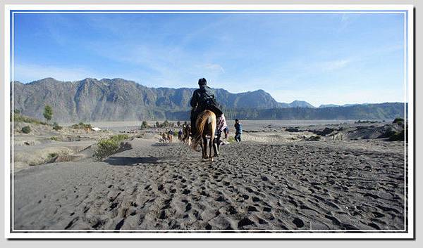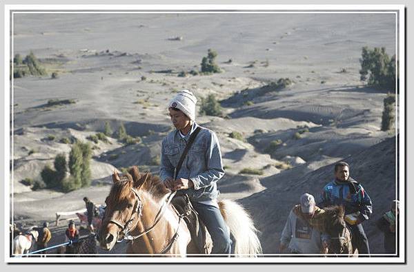 回到地面,再回頭看婆羅摩。在黑夜中,雖然看不見你,卻已經看到你的身上發出一閃一閃的亮片,有人倚靠著你看日出;在日出後,你佇立在廣闊的沙地中,厚厚的火山灰是你的傑作。登頂之前,步步維艱,帶著沈重的喘息聲;登頂之後,那些我們以為很重要的一切,都只是你吐出的沙海一粟。