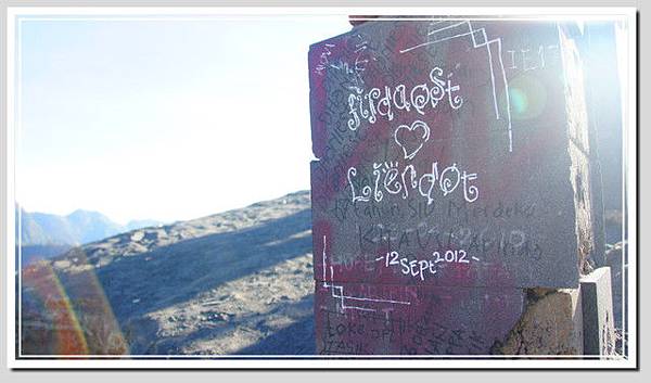 現在不過是早上六點半,太陽的高度卻讓我有已經十點多的錯覺。終於登頂了!靠著自己的雙腳征服了2393米高的婆羅摩。當然2393是海拔,而不是我爬的高度。
