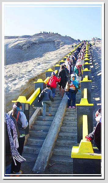 停馬場距離火山口還有一段階梯,大約有兩百多階,跟剛才的沙地走起來,算好走多了,只是坡度較陡,所以有些人走走停停。