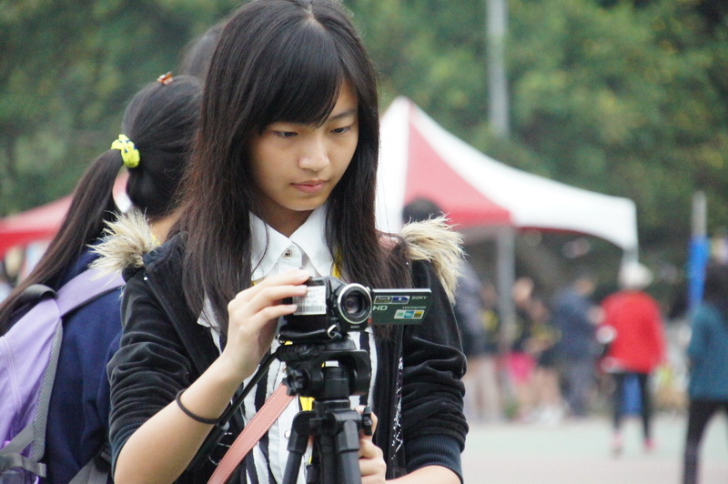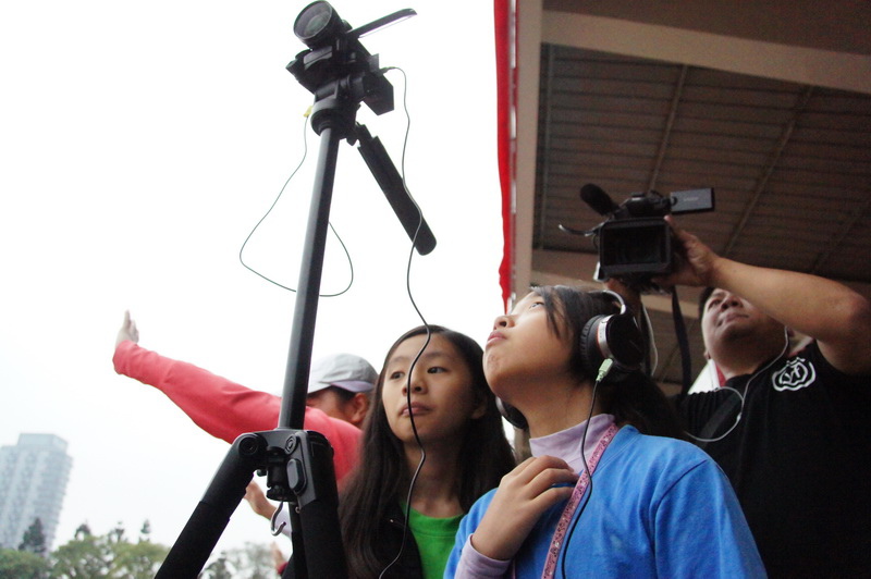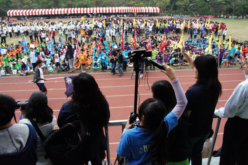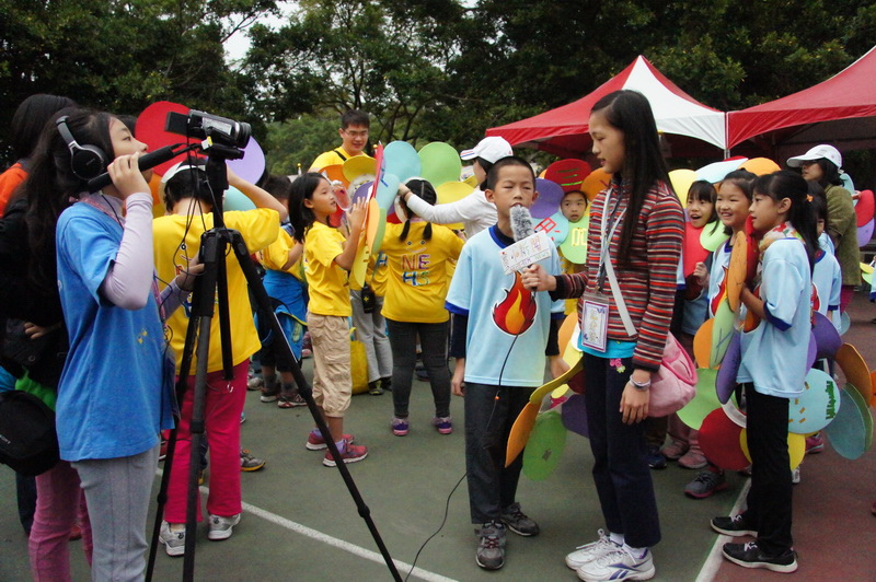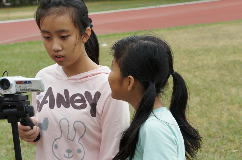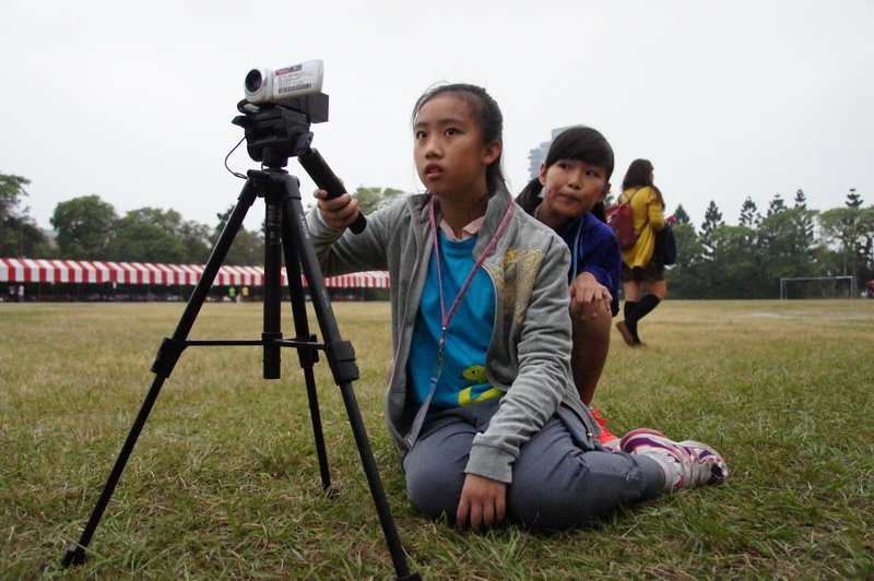 突發狀況不只一個,原本預計在操場草地上拍攝進場的小白組,頻頻被家長擋住。幸好,臨場反應不錯,趕緊改變位置,移到家長群的前面,也避免了只拍到一堆家長背影的畫面。事後,小記者得意的說,看吧!我反應不錯吧!哈哈,說的是,說的是。