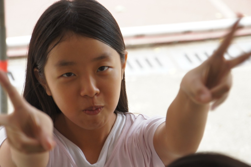 校運會的大會舞似乎是各校的傳統,學校因為五部融合,因此不用每年大家都在跳,國高中部、國小部、雙語部輪流跳,所以三年輪一次。之前我只會留下來看國小部大會舞,今年輪到國高中,也就順便留下來看,小攝影記者跟資深小攝影記者進行拍攝。看完的心得是,中學生跳大會舞,果然比國小整齊多了,但是表情是一樣的無奈......。