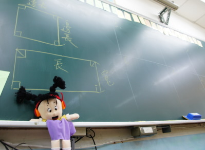 第一組顯然並沒有瞭解題意,以為只要剪出長方形就可以完成任務,老師便說:「本來土地那麼大,現在你們把他的土地丟掉,小優會難過唷!」由於佈題具有情境,在解說不能丟掉剪下的部分時,就很容易理解。加上老師幽默的口吻,使得氣氛相當輕鬆。