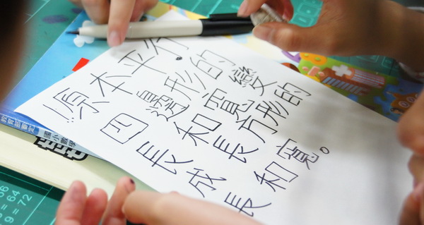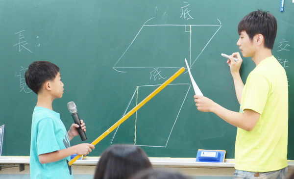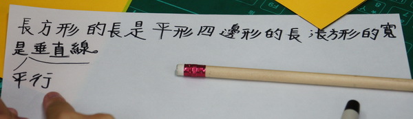 當然,也有組別說出了老師想要的答案,長方形的「長」是平行四邊形的「長」,長方形的「寬」是「平行垂直線」。