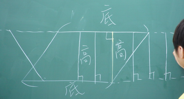 釐清同底等高後,再換底讓學生試著畫出另外一組高。