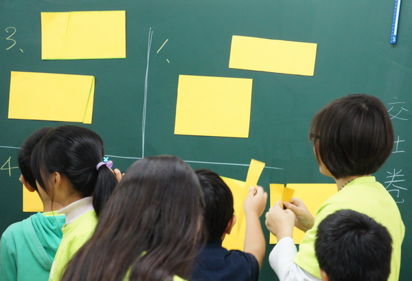 經過第一次到附小觀課後,大家在第二次亮點討論時議論紛紛,究竟轉換成學生討論為主的教學方式,是不是真的會學得更透徹,還是浪費許多課堂上寶貴的時間?是否會影響進度?是否會遭到家長質疑?許多疑問,在亮點教師群中迴盪著。最後,教授建議我們試著教教看,互相觀摩,找出適合我們學校的方式,因此,安排了一堂數學課,由林老師來教,大家一起討論學生的反應與成效。