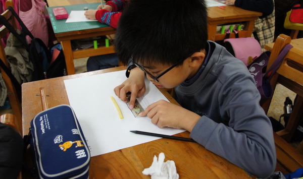 課本的活動,都是以單位分數的累加,去湊出等值分數,屬於1/2=( )/4的題型。但是,本次的布題是4/( )=2/( ),難度顯然高出許多。這樣的布題是希望學生透過畫圖,去發現兩分數的圖像會一樣大,而不是先解題才配合畫圖。結果,學生畫出了五種類型。