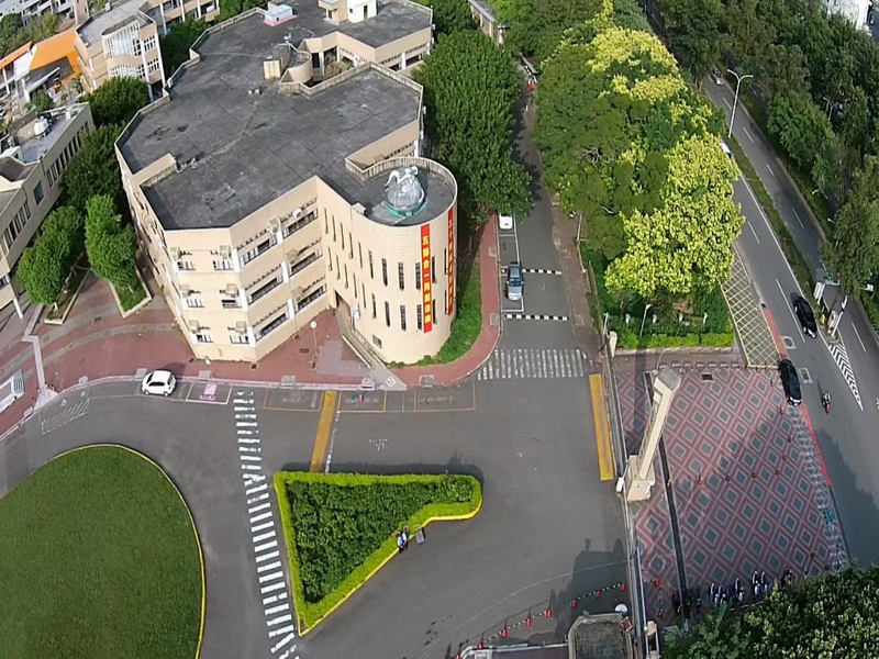 空拍直升機之強大,讓我跟原甫咋舌,一直在挑戰飛行高度與距離,然後試著操控直升機運鏡,雖然技術很不純熟,畢竟是第一次操控,但是依舊為拍到的畫面感到震撼,不禁要說,這就是我們的學校啊!