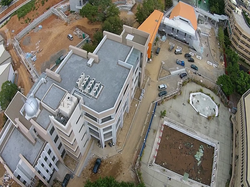 空拍機飛過工地圍牆,讓我們一窺新校舍的興建情形,新奇又感有趣。