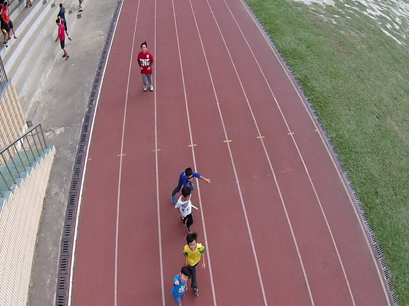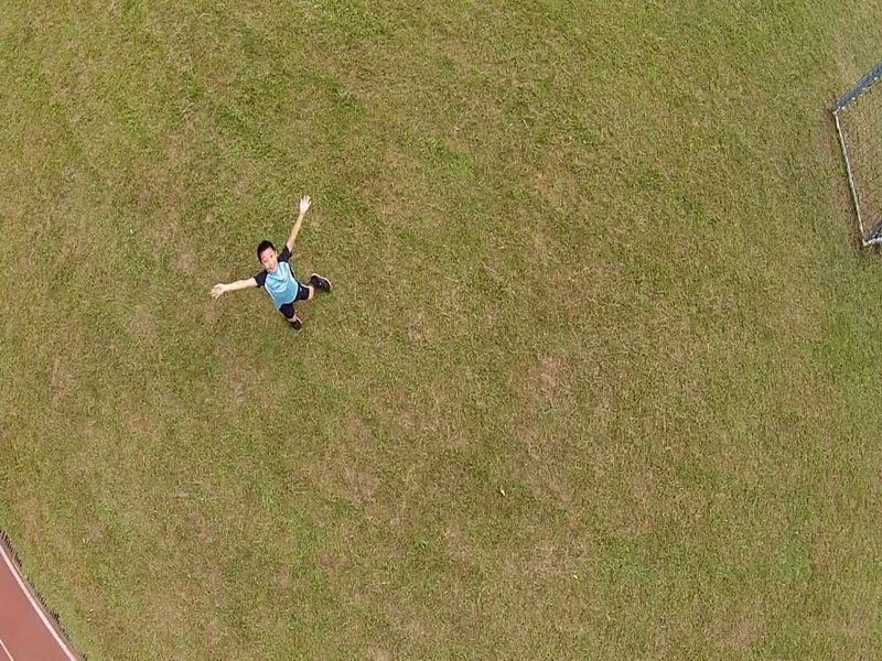 有一次,空拍機停在操場旁,畫面是一片綠地,突然有一個小孩從跑道上跑道空拍機下,拼命招手後離開,這不小心拍到的畫面,卻是我最喜歡的畫面。拍了很多空景,都沒有讓我感動,唯有「人」才觸動心弦,如果有機會,應該在每個場景選擇代表性事件,拍攝有人在的畫面,像是拍攝升旗台就要在升旗典禮,拍攝操場就要在全校運動會進場時,拍攝金山寺旁就要在動物嘉年華遊行時,唯有「人」的畫面,才是學校存在的價值。