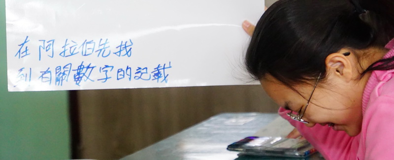 這一題的答案,對於他們來說頗簡單的,七組都寫了大大的「0」。而這影片─1的故事,也是我曾經在數學課用過的影片,當看到印度古文明介紹這一段的時候,馬上就把這影片找了出來,此時果然派上了用場。