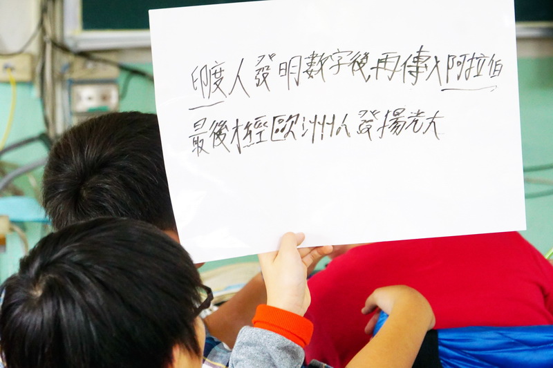 第三到第七組都差不多,都認為是印度人發明數字,傳入阿拉伯,再經由歐洲人發揚光大,顯然是已經有看過類似的書了。