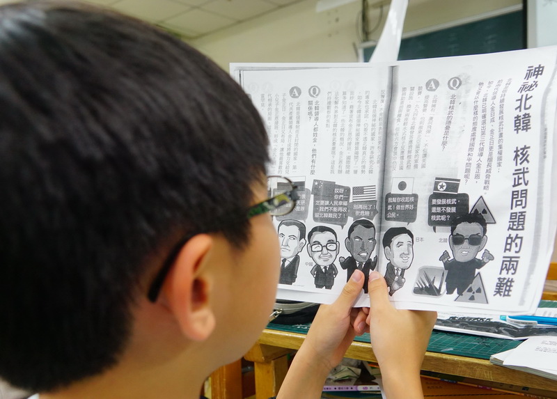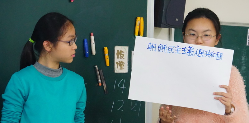 這次提供的資料包括「2016圖解簡明世界局勢」及「孩子的第一個國際觀學校」,裡面都有詳細的說明兩韓的恩怨情仇,學生很快就能從中找到「北韓」的國名,這是一個平行世界的事情,同樣的一個國家,卻有不一樣的稱呼,在這世界上屢見不鮮。