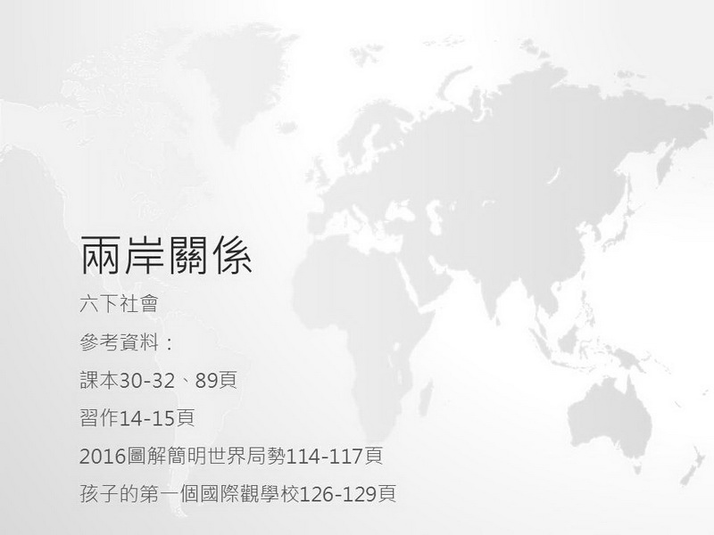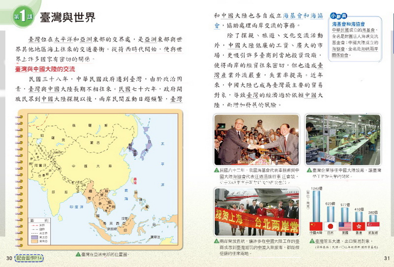 這堂課的主題─兩岸關係,課本以兩段共230個字(含標點符號)交代了臺灣與中國大陸的交流。