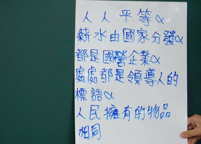全部看同樣一則新聞報導,同一組內抓到的訊息量卻是差異這麼大,有趣的是,對於「社會主義」這個抽象的名詞,要如何從具體事實中建立起來,可有一番討論了。