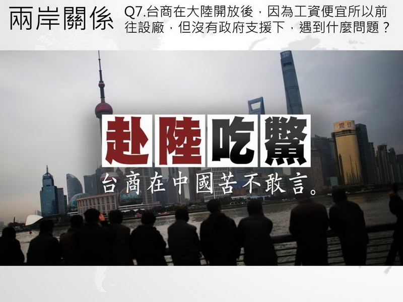 臺商問題,就有著時空錯置的現象。這一題要寫的是1990年代臺商面對的問題,但是,學生平常接觸的新聞訊息,是2010年後的事情,這20年面對的問題,有些改變了,有些卻是仍然發生。