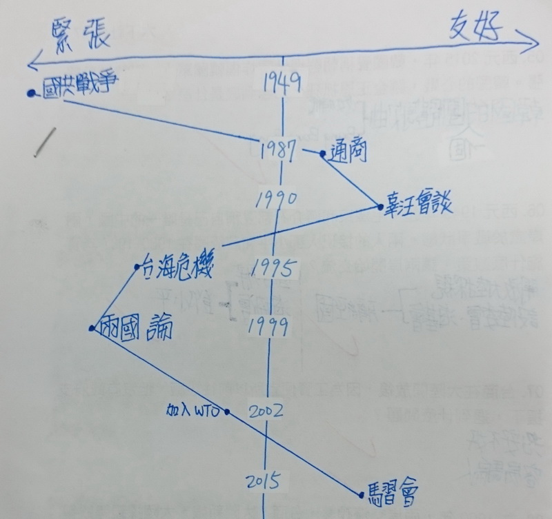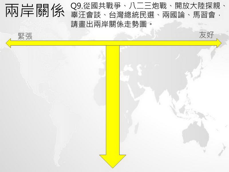 最後一題,就是要學生把兩岸發生的重大事件,畫出關係走勢圖。