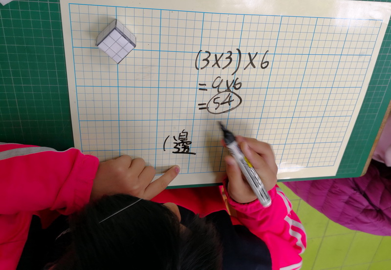 「請問有多少個格子?什麼,都還沒算完?這樣不行,要想辦法,有沒有更快的方法,可以在短時間把六個面都算完,再給你們一分鐘。」