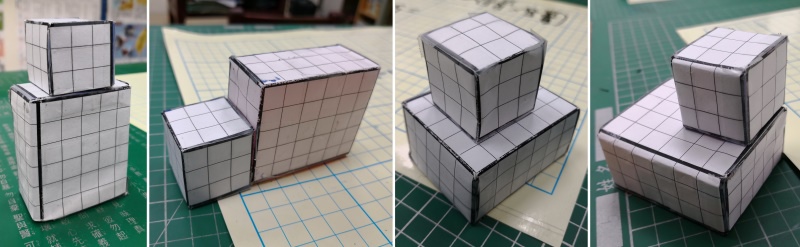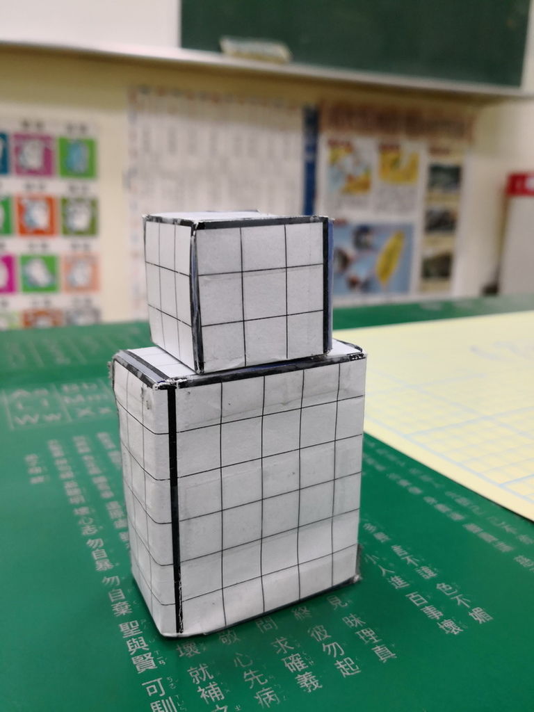 為什麼長方體設計成6×5×3,正方體設計成3×3×3,主要就是為了讓學生可以組合出這四種造型,而設計出來的數據。