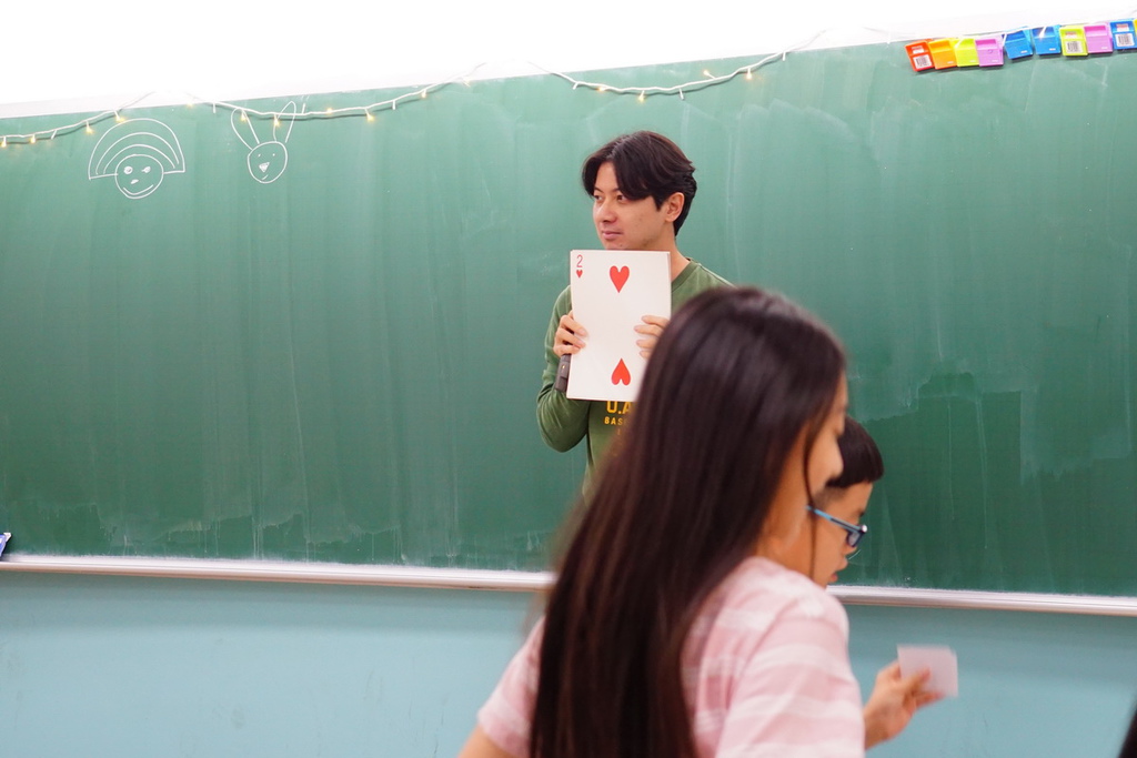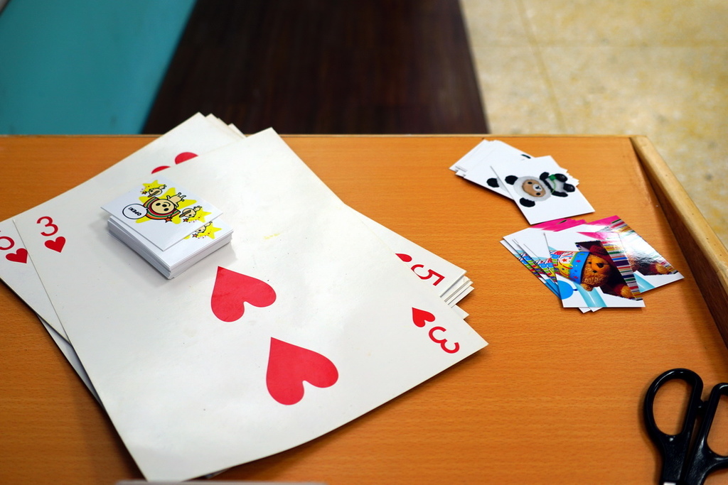 兩人一組,拿到一盒牌卡,裡面有50張open將牌卡、10張兔子牌卡以及10張小熊牌卡。首先,我們先玩open將和兔子,將這兩種牌卡取出來後,一個人負責open將、另外一個人負責兔子,兩人須合作,又快又正確的拿出老師指定的open將以及兔子張數後起立,正確的小組獲得一分,最快又正確的可以多加一分。