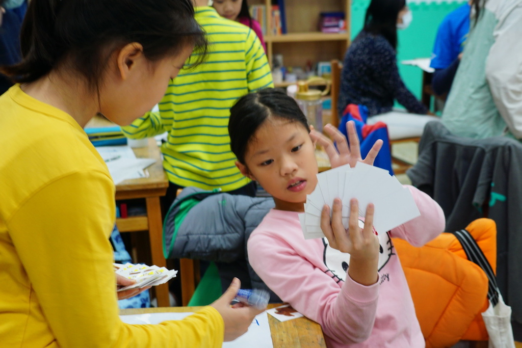 先核對一下答案,2隻兔子應該可以換到6張open將,請兩組互相交換檢查,確認正確的小組可以獲得1分然後坐下,錯誤的小組無法得分然後坐下。「在比賽前,你有做一些安排?」「沒有。」「如果做了特別的安排後,會不會又快又正確的拿出來?」語畢,許多小組開始做了把牌卡拿來分堆了。